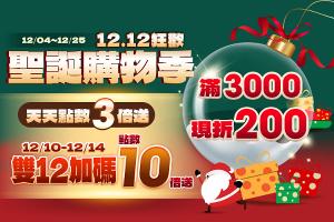 於活動指定時間,單筆訂單滿NT$3,000(含以上)_[扣除點數折抵及折價券後]點數10倍贈(單筆訂單限回饋一次)。