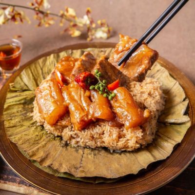 軟嫩可口和牛腮肉及牛筋,長糯米飯吸飽和牛油香氣搭配爆香青花椒,微辣口感、香氣撲鼻
