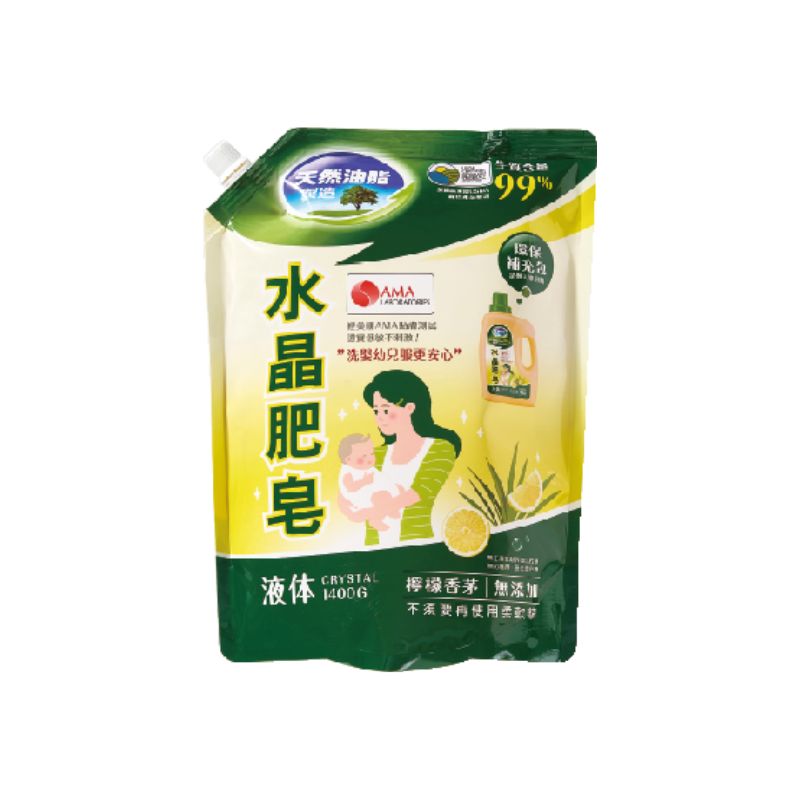 【箱購】南僑 水晶肥皂液補充包 檸檬香茅 1400g x6包 (11/24起依訂購順序出貨)