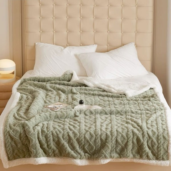 【DUYAN 竹漾】韓系麻花牛奶絨 雙層加厚被毯 / 橄欖綠