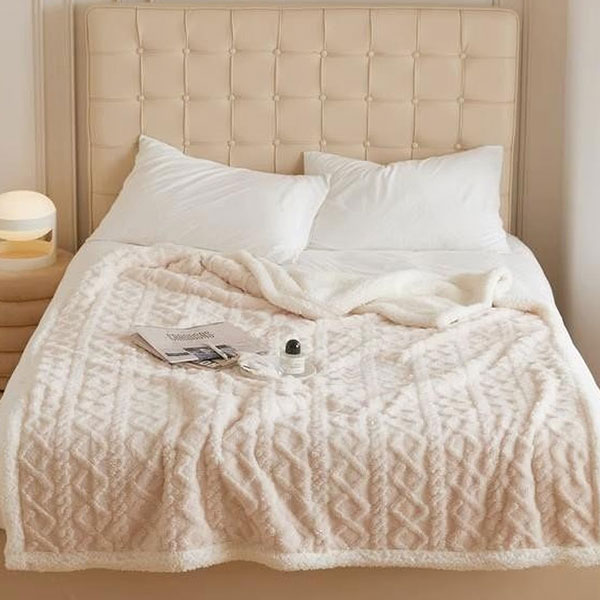 【DUYAN 竹漾】韓系麻花牛奶絨 雙層加厚被毯 / 杏色奶油