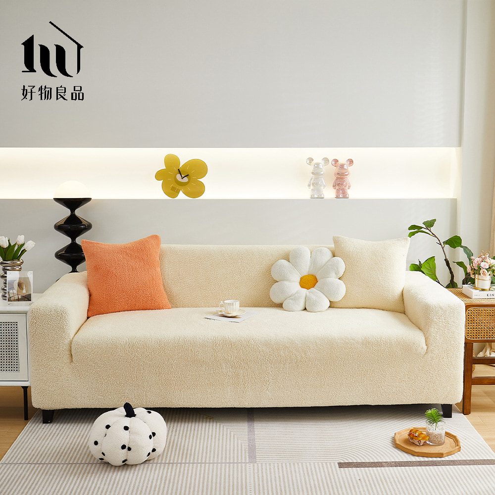 短毛保暖系列《奶油白》防貓抓系列高彈力立體提花彈力沙發罩|贈抱枕套*1+泡棉條