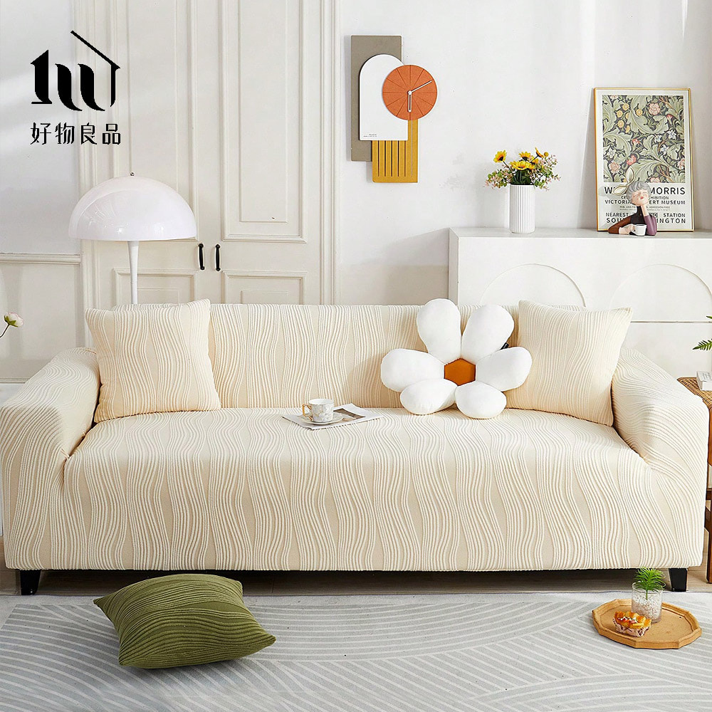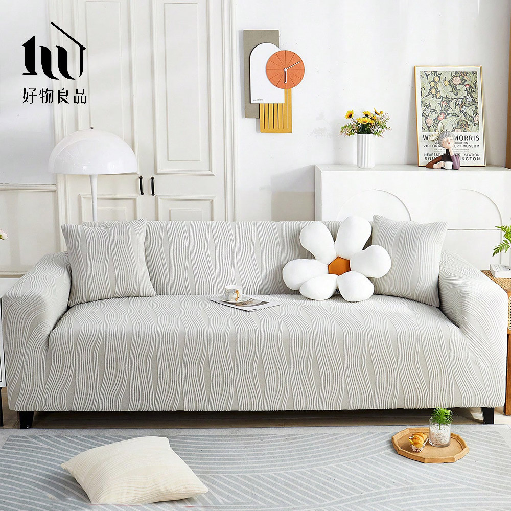 幾何波紋系列《米色》四季通用高彈力立體提花彈力沙發罩|贈抱枕套*1+泡棉條