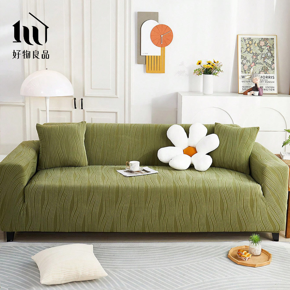藝術紋理系列《綠色》防貓抓系列高彈力立體提花彈力沙發罩|贈抱枕套*1+泡棉條