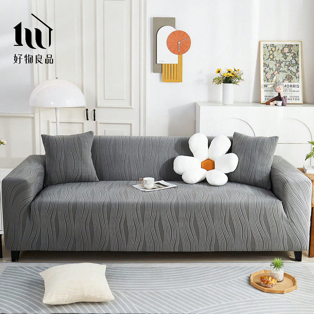 幾何波紋系列《灰色》四季通用高彈力立體提花彈力沙發罩|贈抱枕套*1+泡棉條