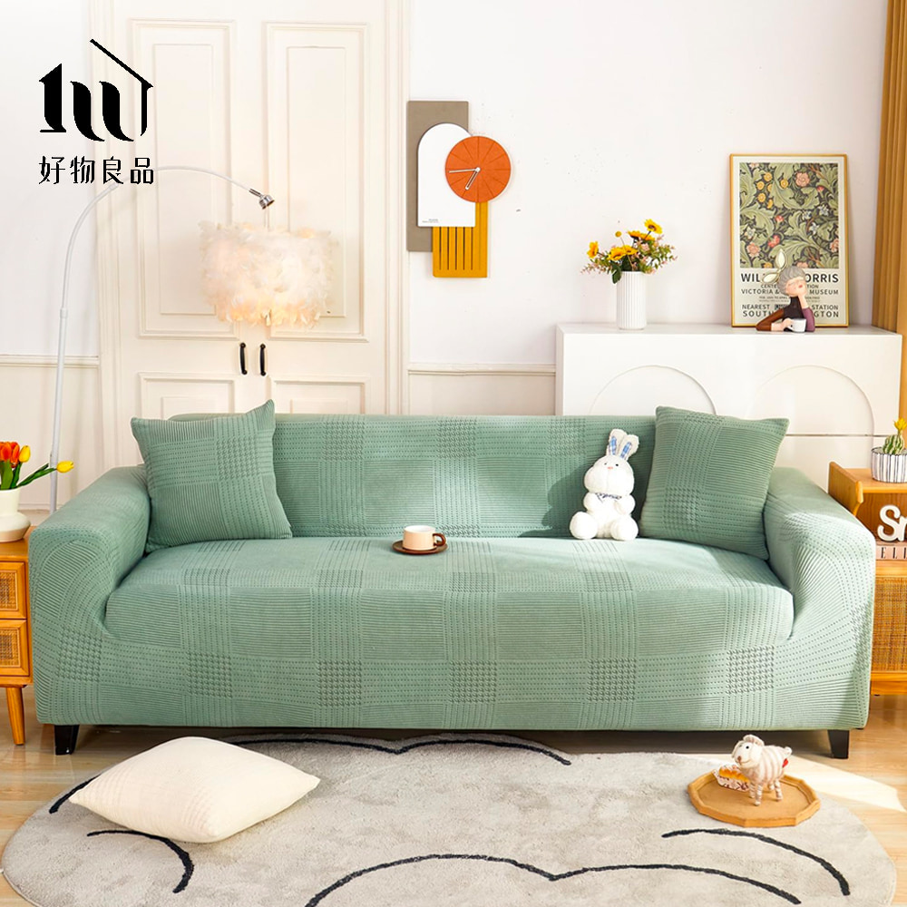 短毛保暖系列《抹茶綠》防貓抓系列高彈力立體提花彈力沙發罩|贈抱枕套*1+泡棉條