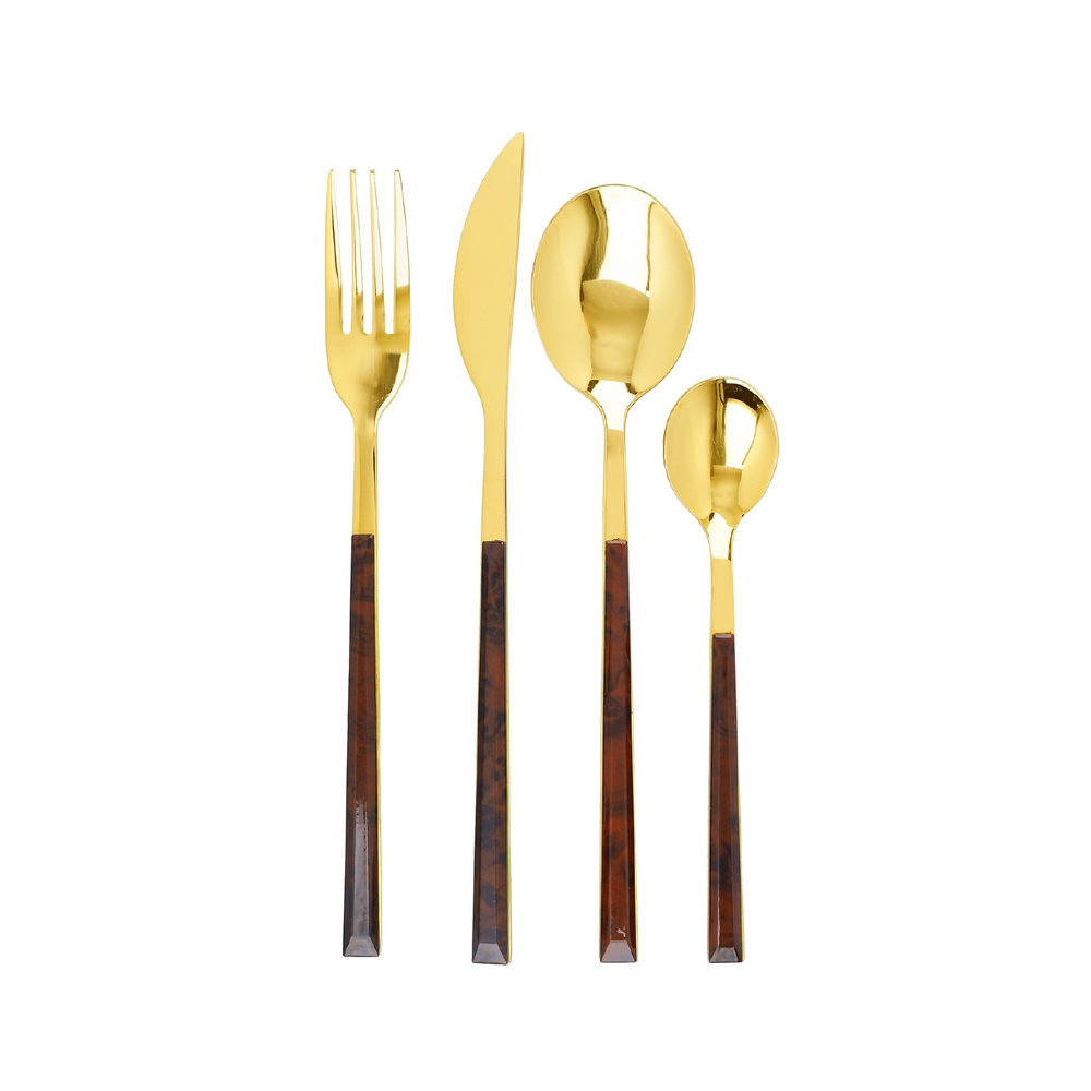 美國 Mikasa - 不鏽鋼刀叉匙餐具16件(琥珀茶金) / 湯匙 叉子 餐刀