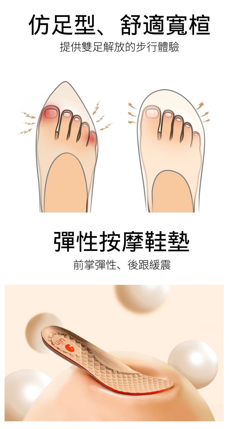4.超大空間舒適寬楦設計,提供雙足解放不壓迫;柔軟易彎折,便利攜帶