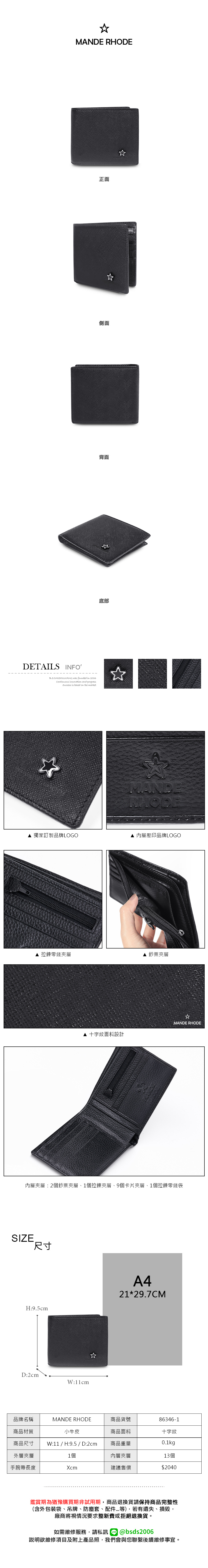 MANDE RHODE - 曼德羅德 - 真皮訂製十字紋短夾 - 86346-1