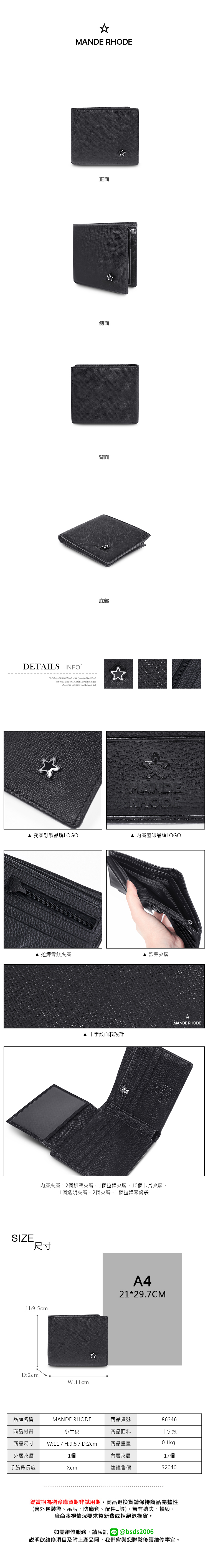 MANDE RHODE - 曼德羅德 - 真皮訂製十字紋短夾(內有上下隔層) - 86346