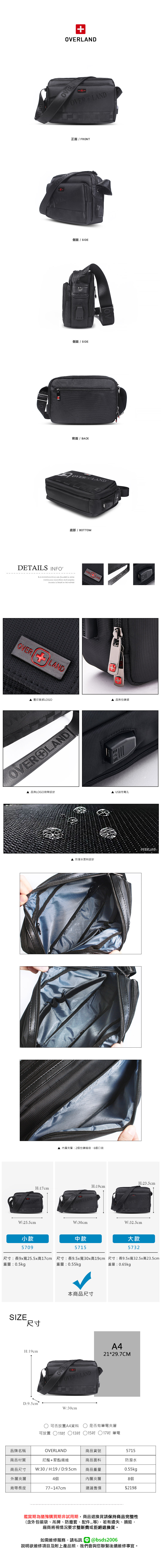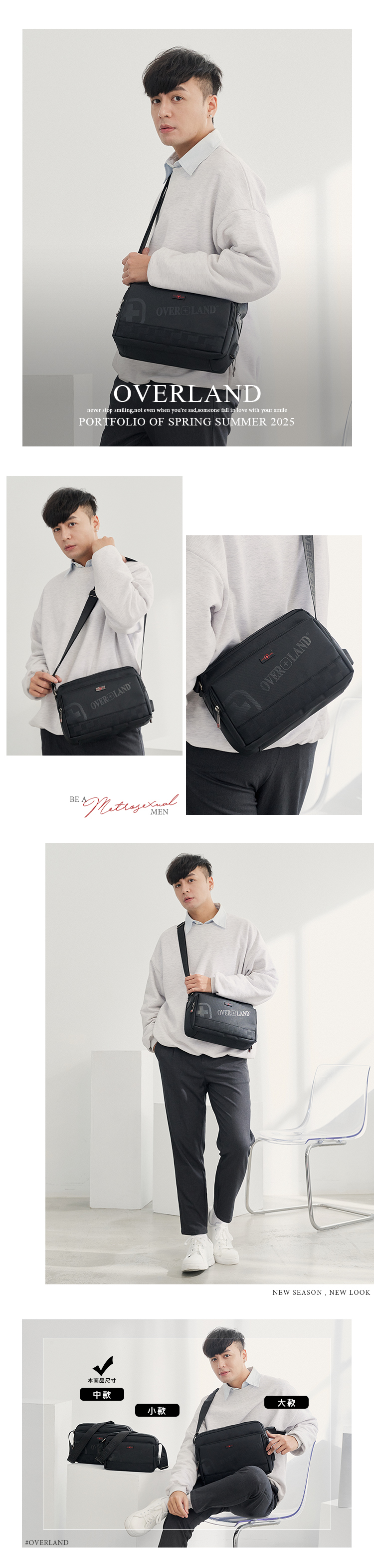 OVERLAND - 美式十字軍 - LOGO浮印格紋拼接斜背包(中/M) - 5715