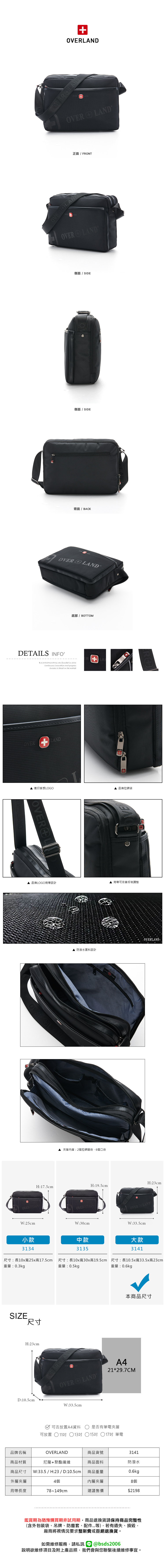 OVERLAND - 美式十字軍 - LOGO浮印斜背包(大/L) - 3141