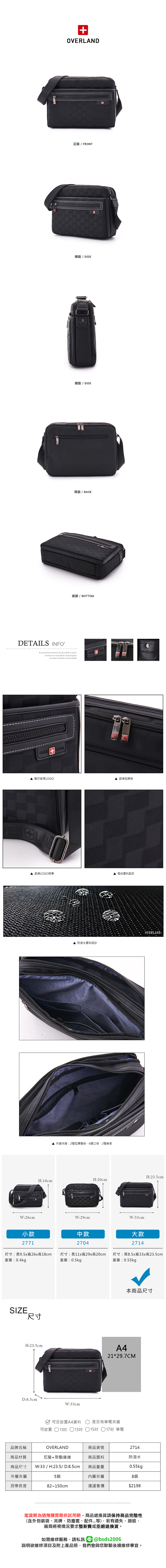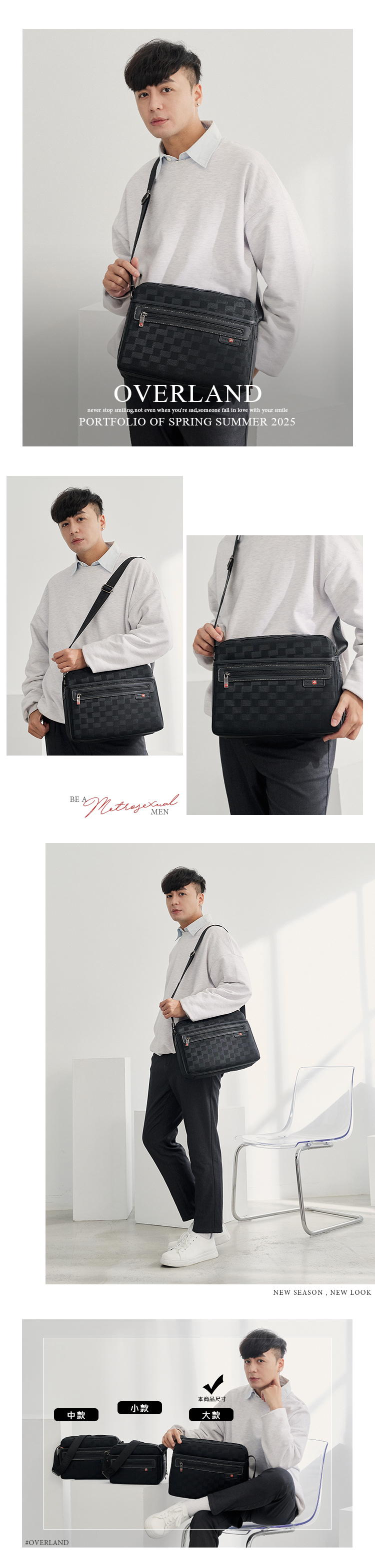 OVERLAND - 美式十字軍 - 格紋車線造型斜背包(大/L) - 2714