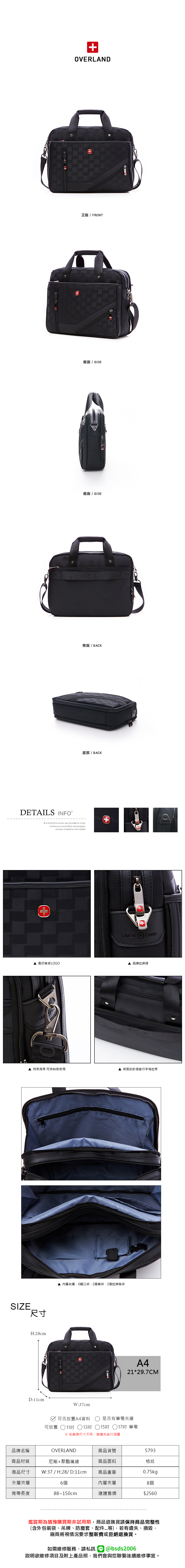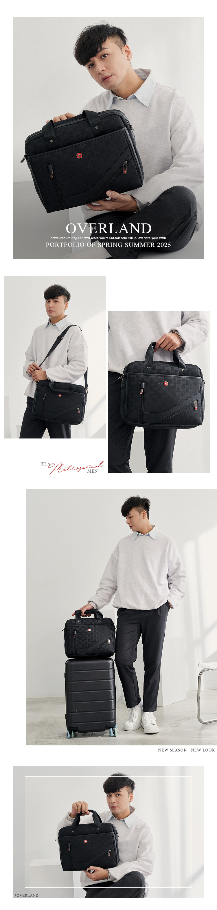 OVERLAND - 美式十字軍 - 格紋拼接公事包/電腦包/手提包 - 5793