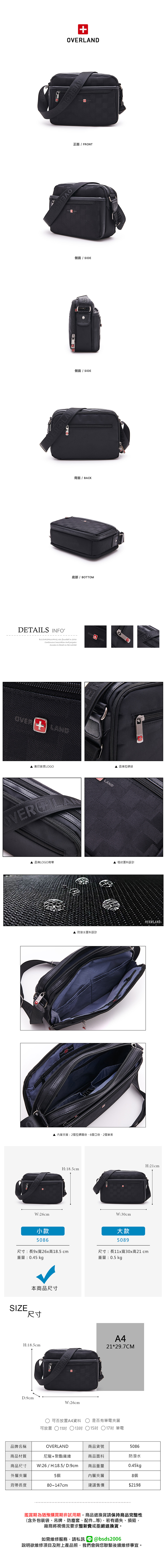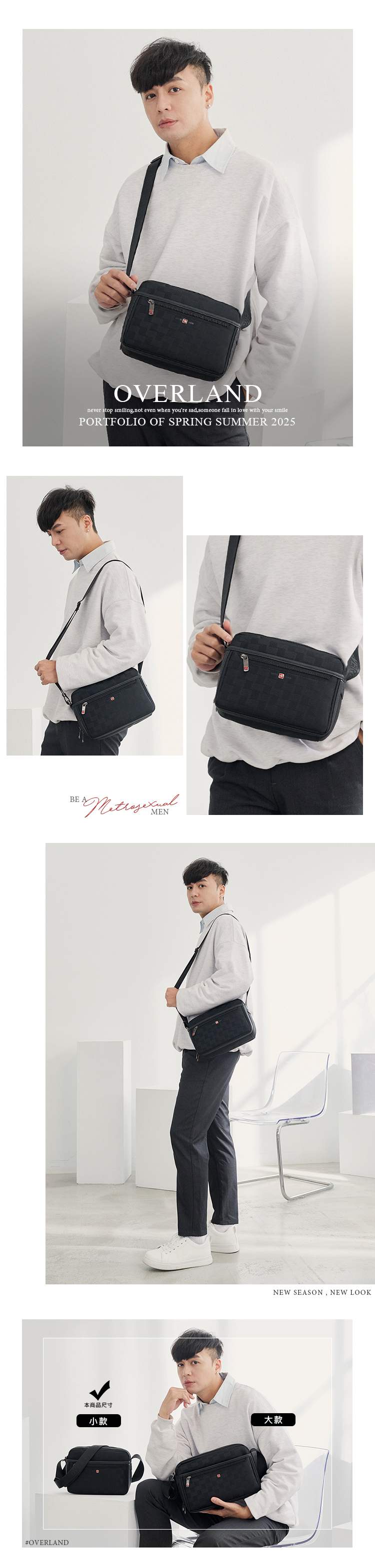 OVERLAND - 美式十字軍 - 格紋拼接斜背包(小/S) - 5086