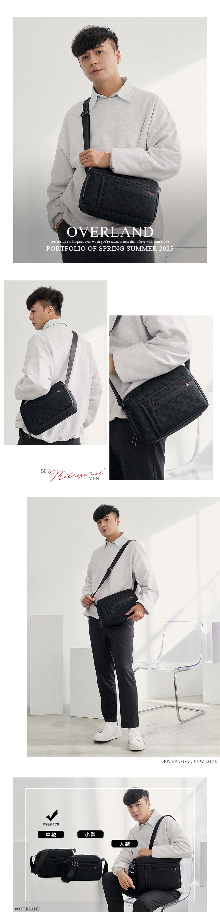 OVERLAND - 美式十字軍 - 格紋經典造型斜背包(中/M) - 2919