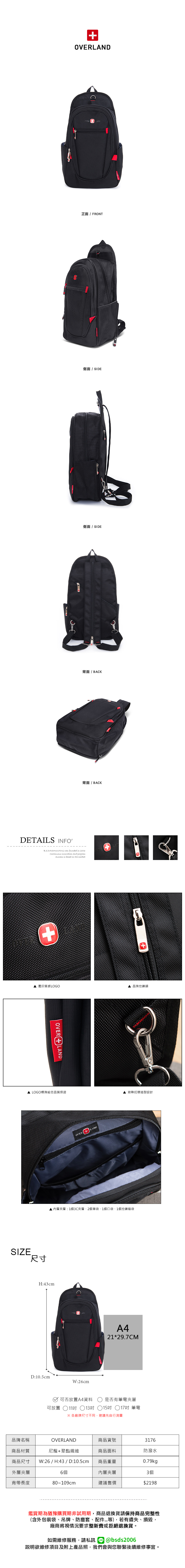 OVERLAND - 美式十字軍 - 素面個性造型機能大容量胸背包/後背包 - 3176