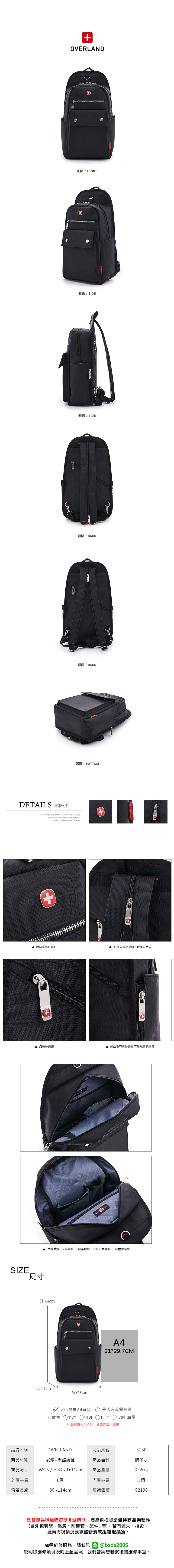 OVERLAND - 美式十字軍 - 素面掀蓋造型大容量胸背包/後背包 - 3180
