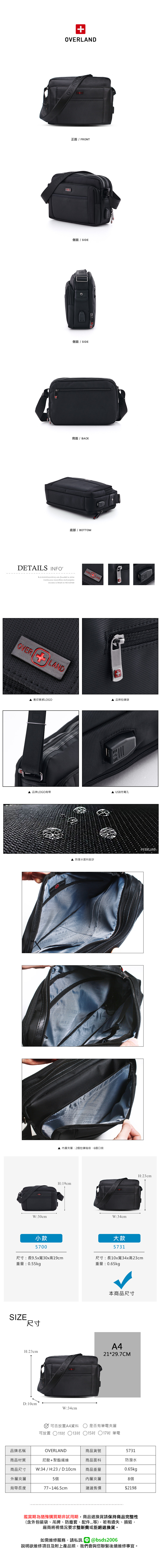 OVERLAND - 美式十字軍 - 素面斜背包(大/L) - 5731