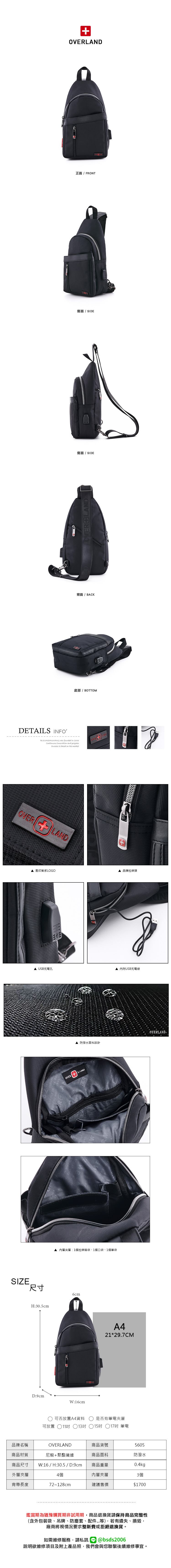 OVERLAND - 美式十字軍 - 素面造型小胸背包/肩背包 - 5605