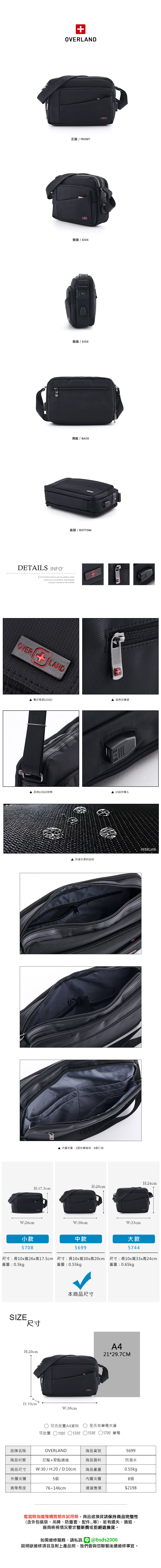 OVERLAND - 美式十字軍 - 素面造型斜背包(中/M) - 5699