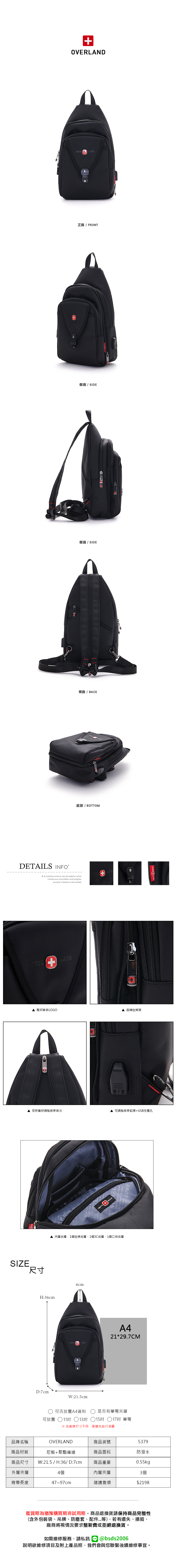 OVERLAND - 美式十字軍 - 素面插扣造型胸背包/後背包 - 5379