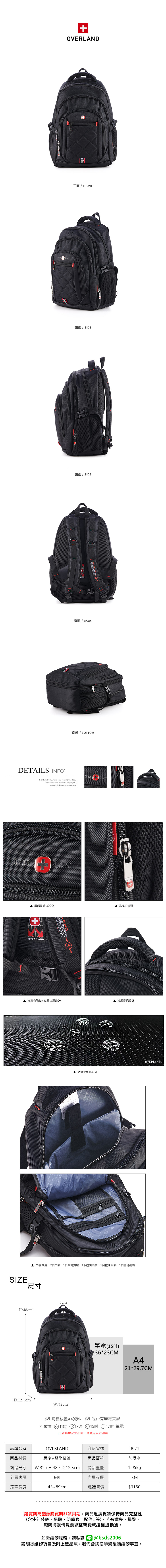 OVERLAND - 美式十字軍 - 菱格筆電大容量後背包 - 3071