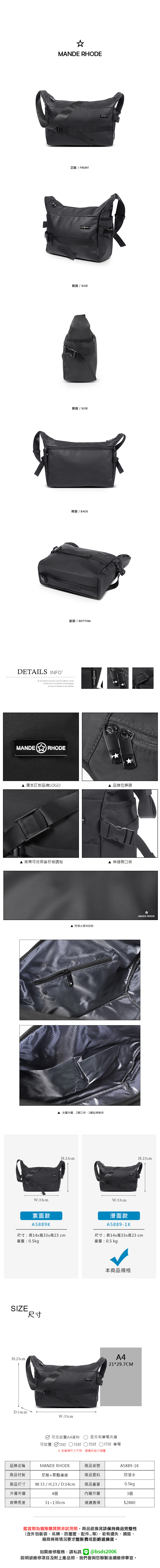 MANDE RHODE - 曼德羅德 - 滑面大容量斜背包 - A5889-1K