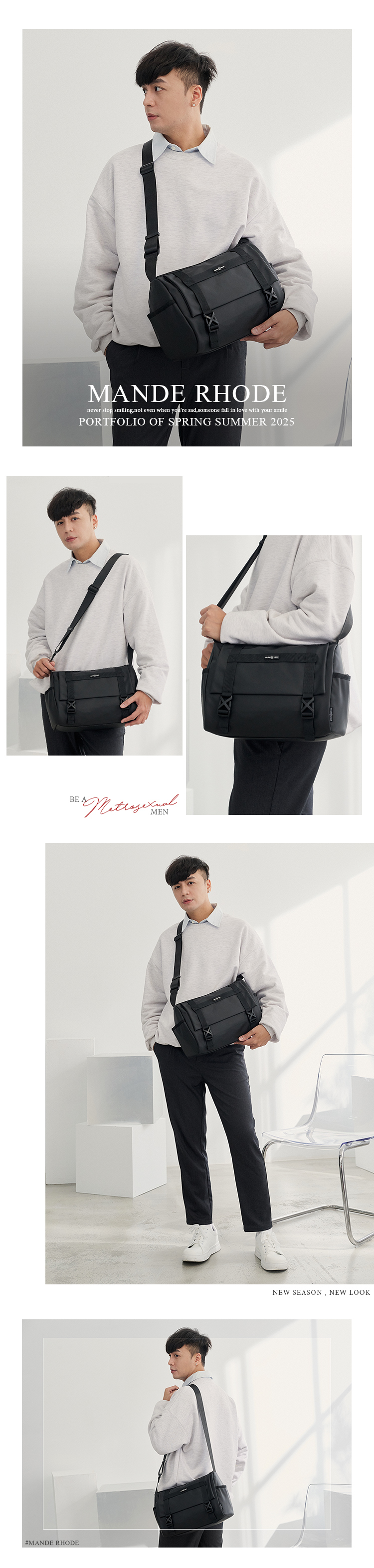 MANDE RHODE - 曼德羅德 - 滑面大容量插扣造型郵差包(大/L) - A5890-1K