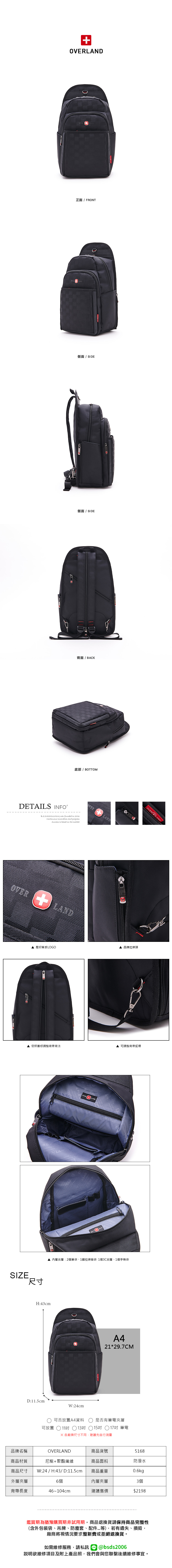 OVERLAND - 美式十字軍 - 格紋機能大容量胸背包/後背包 - 5168
