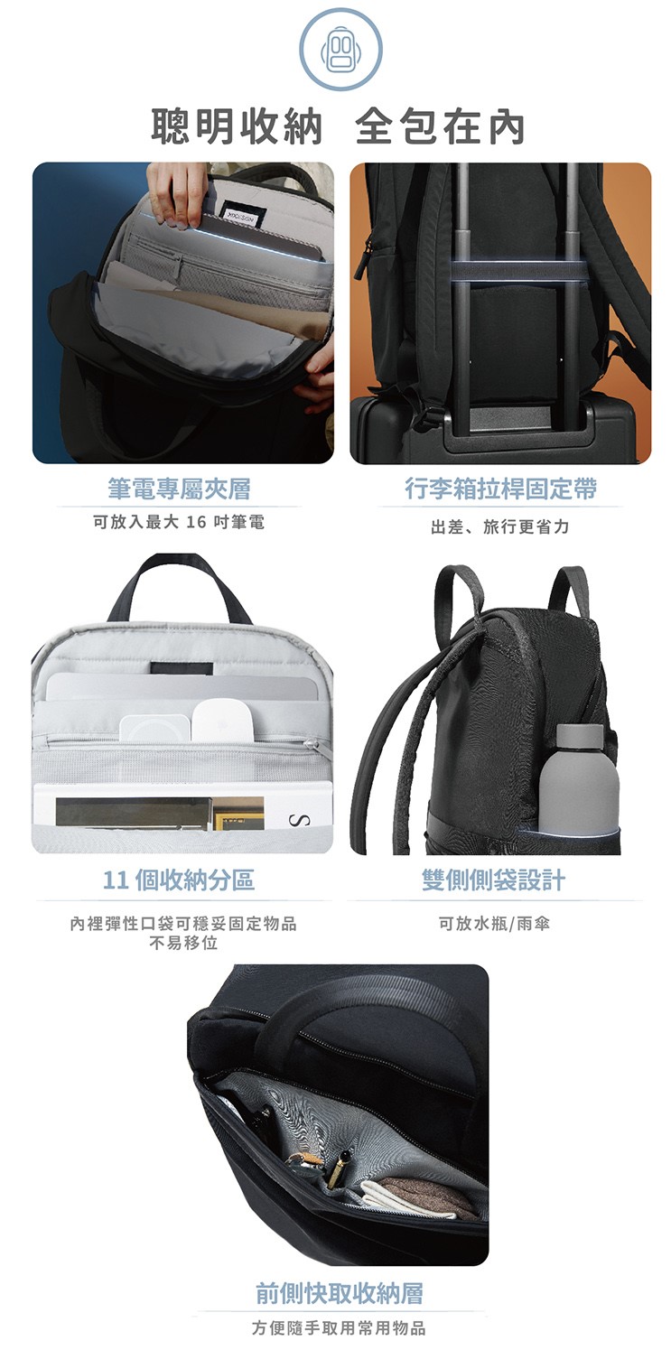 ◆ 輕量化設計/兩側水壺袋+雨傘袋