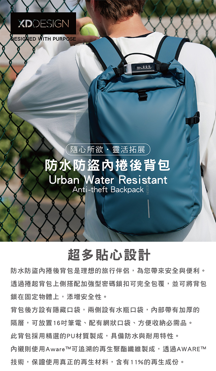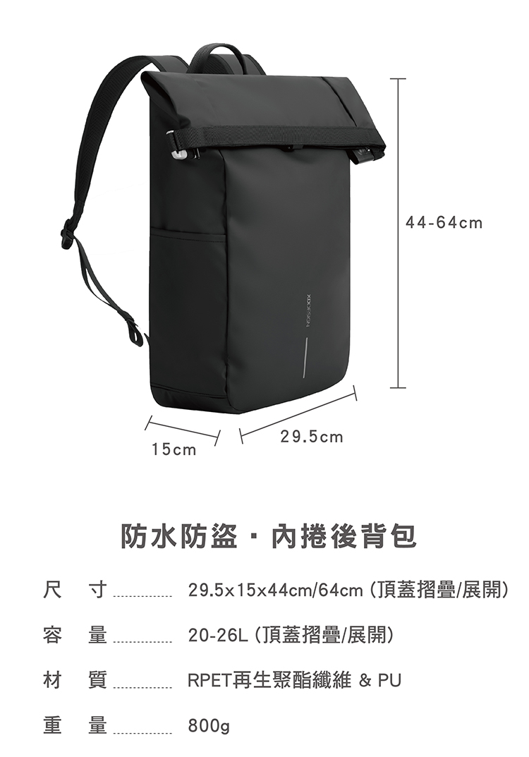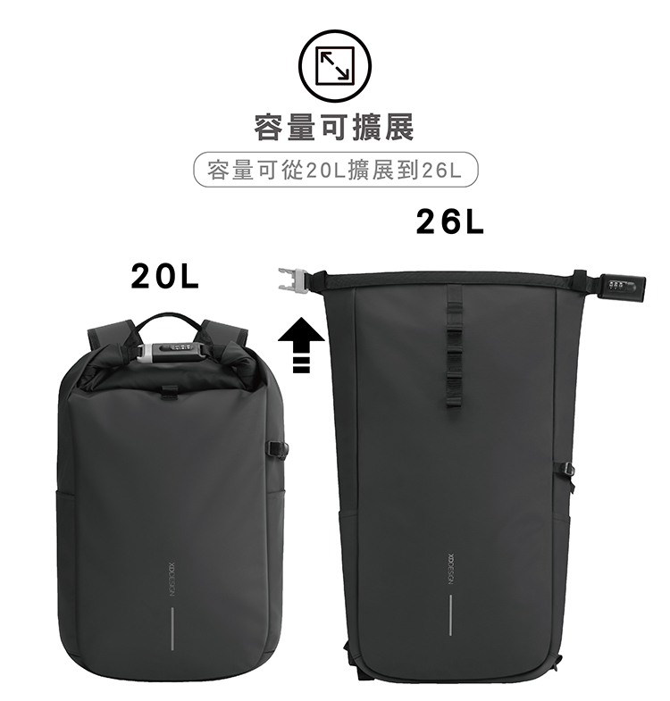 包裝內容物:XDDESIGN 城市輕旅 防水防盜 內卷後背包*1