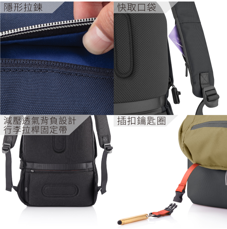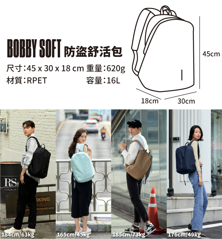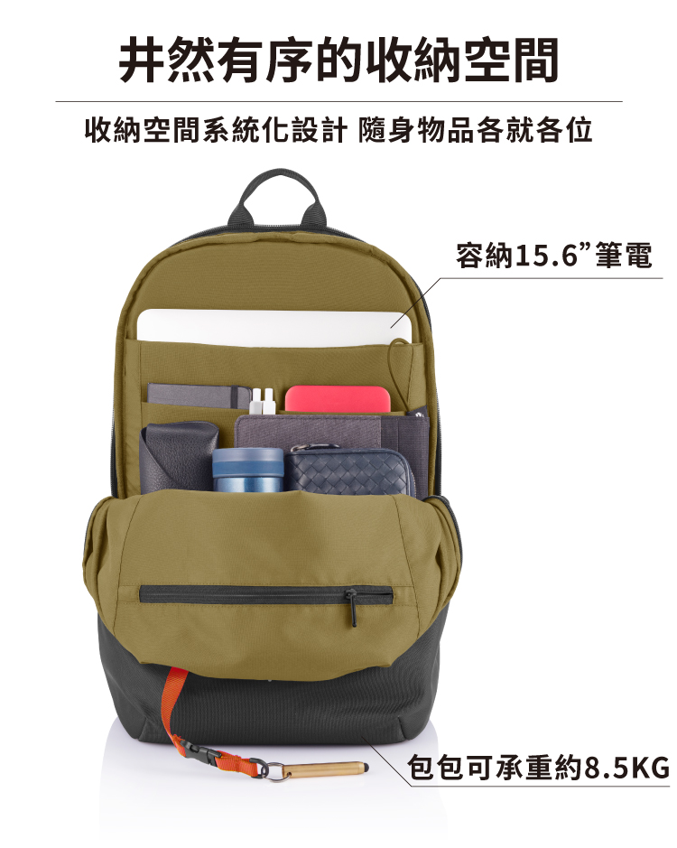 ※ 筆電收納層可容納15.6"筆電;實測機身尺寸:35.7x23.8x1.8 cm (單邊超出實測機身長寬高3cm內的範圍,皆可適應)。