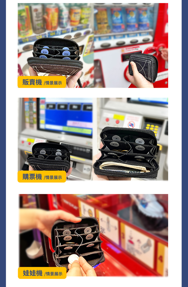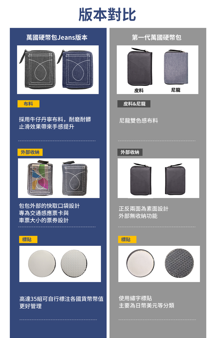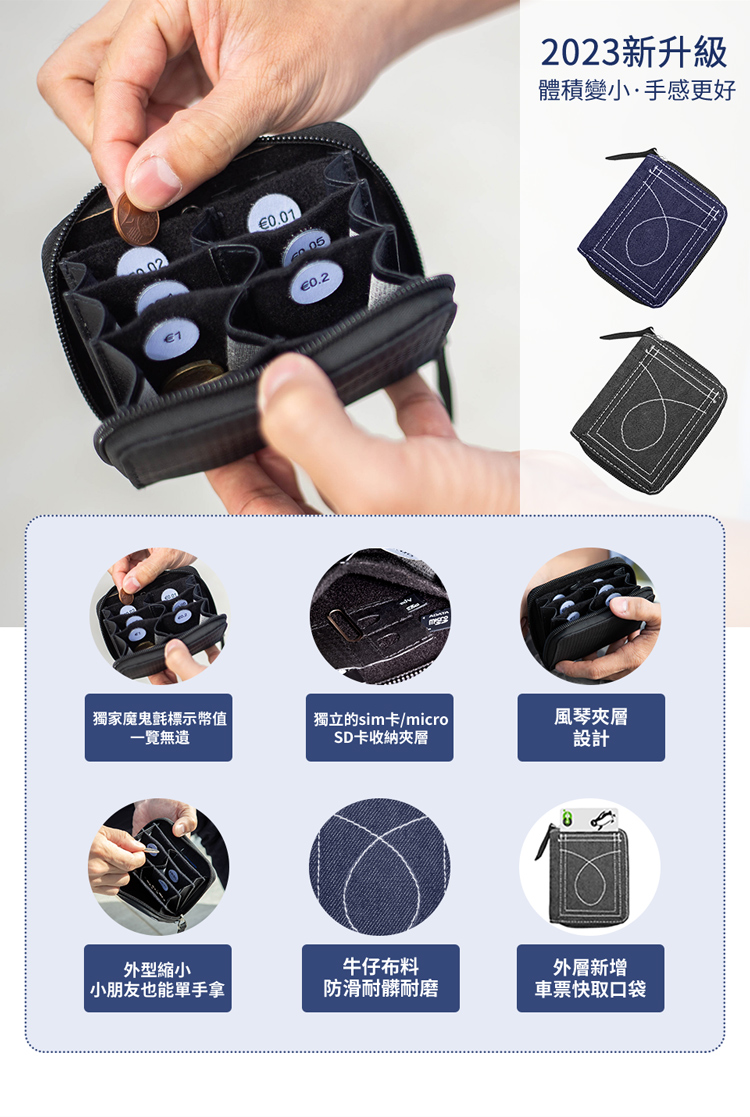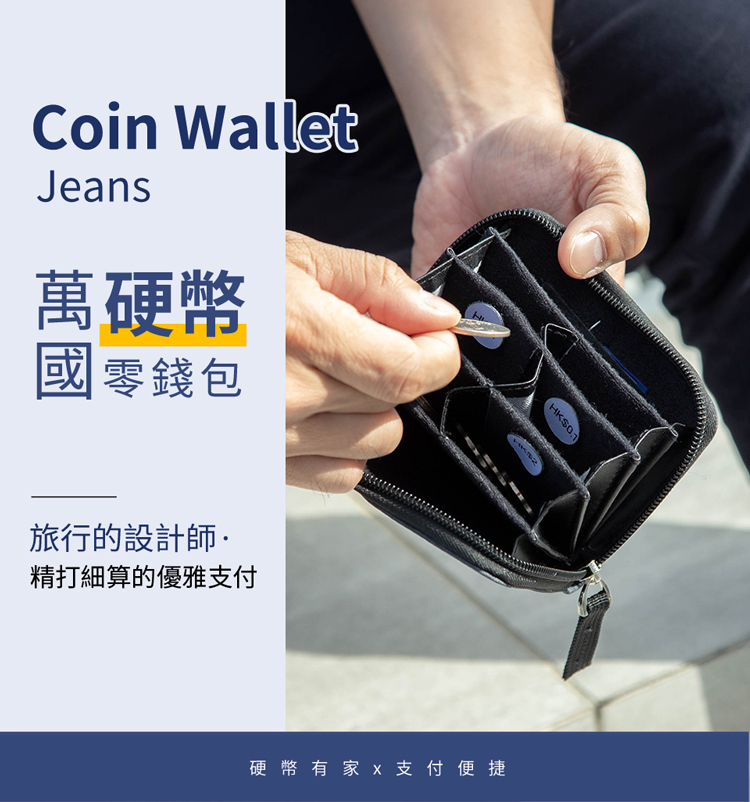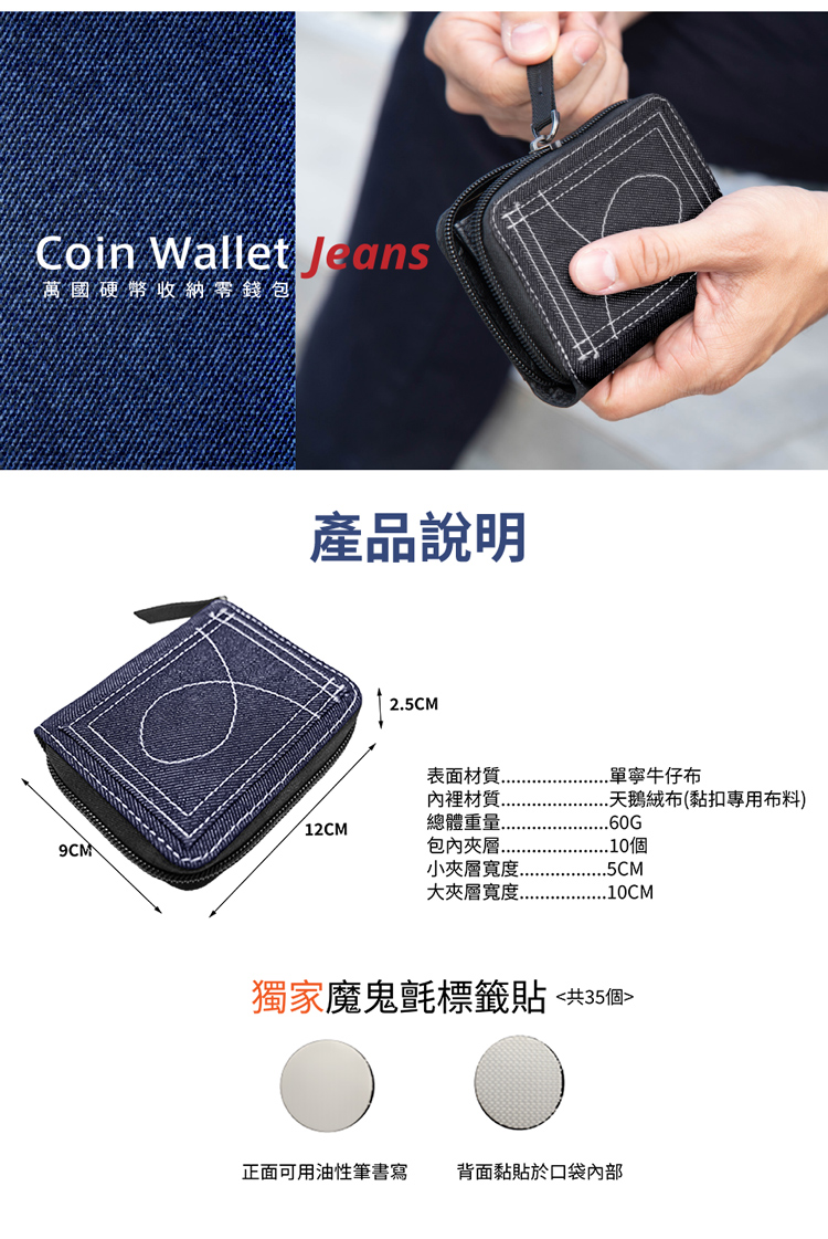 包裝內容物:Coin Wallet萬國硬幣收納包Jeans*1、魔鬼氈標籤貼*1組