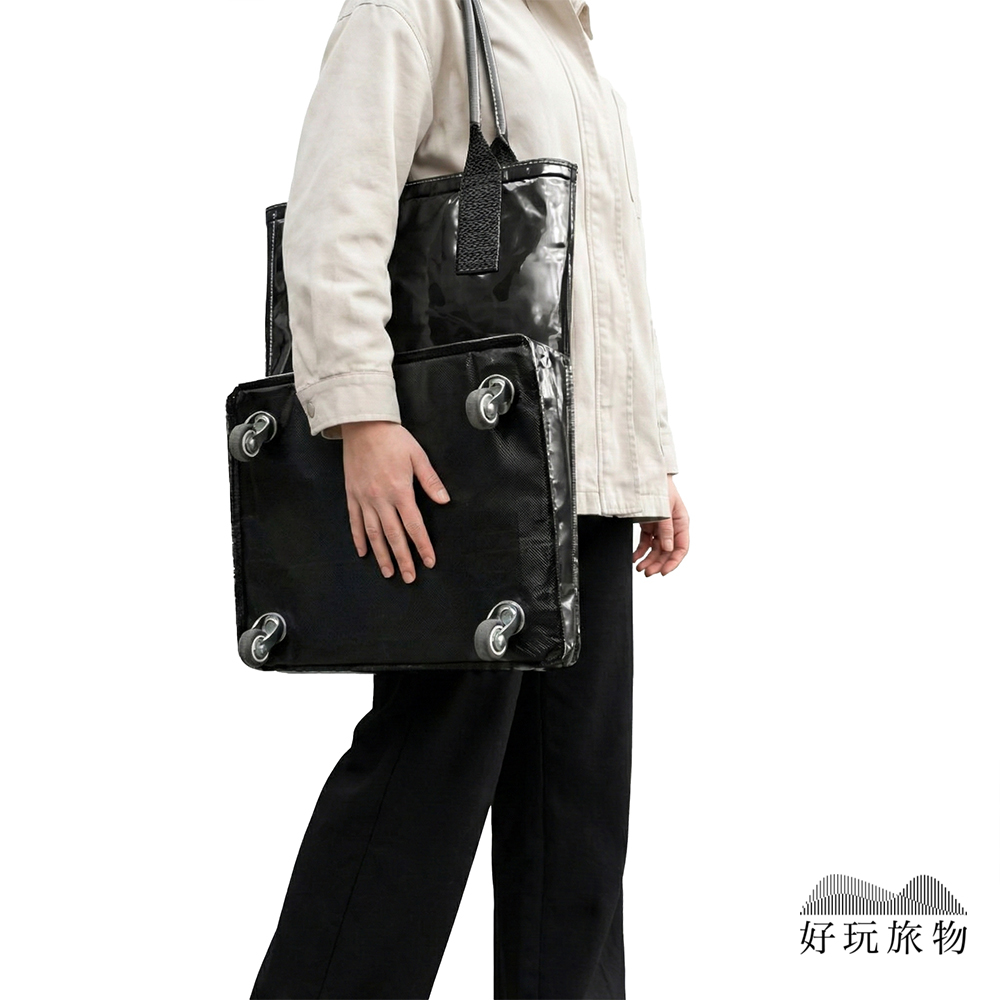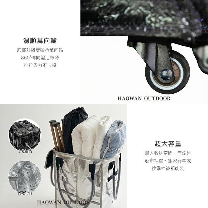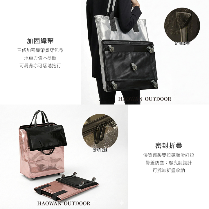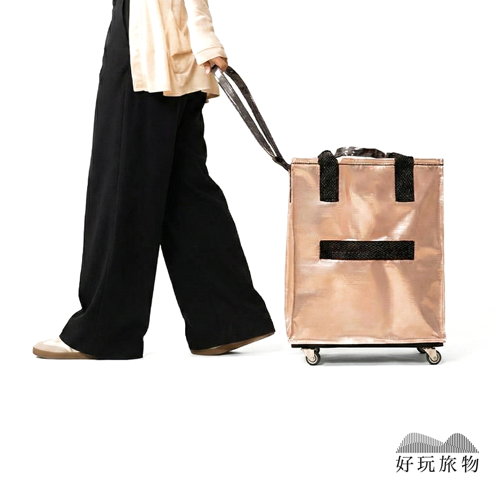 【好玩旅物】滑輪行李袋超大容量保溫層折疊拖輪包|360度萬向輪買菜車旅行袋