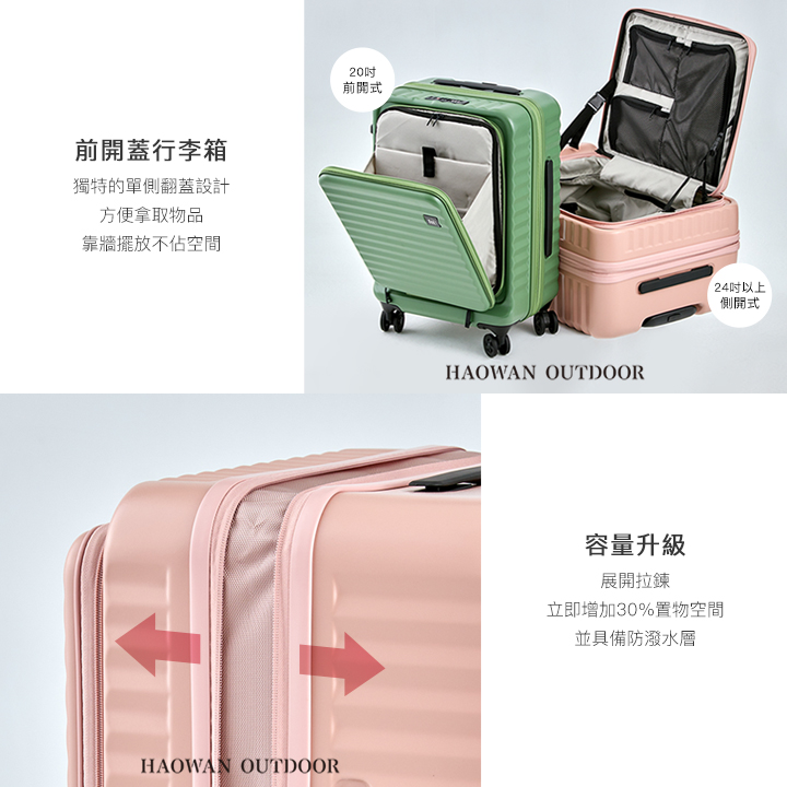 • 容量升級-展開拉鍊立即增加30%置物空間,並具備防水層避免進水