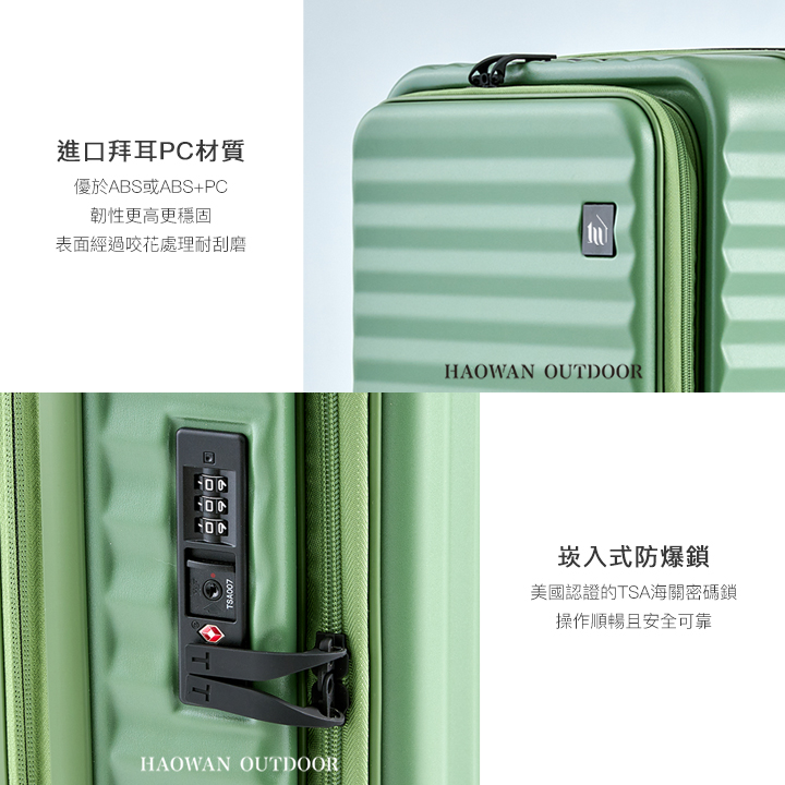 • 崁入式防爆鎖-美國認證的TSA海關密碼鎖,操作順暢且安全可靠