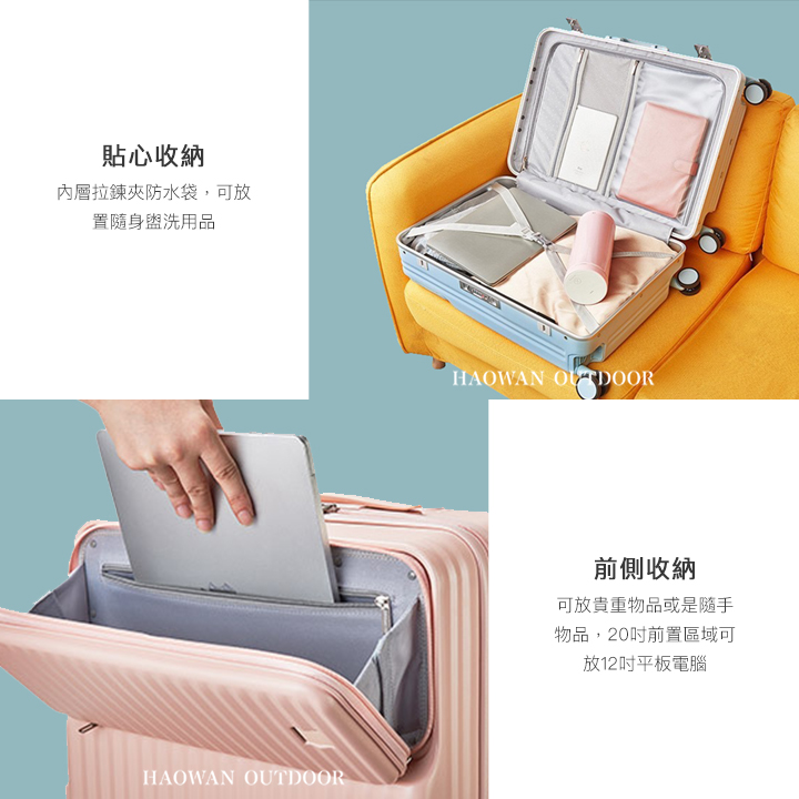 20/24吋登機鋁框防爆筆電平板拉桿行李箱