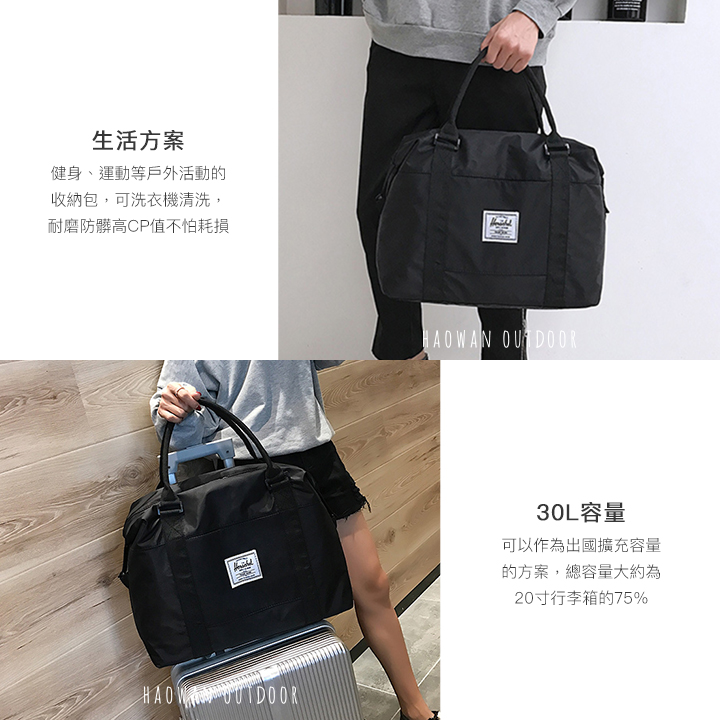 • 30L容量-可以作為出國擴充容量的方案,總容量大約為20寸行李箱的75%
