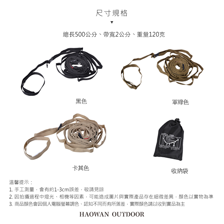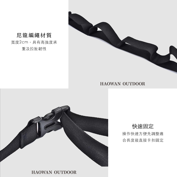 • 尼龍編繩材質-寬度2cm,具有高強度承重及彈性