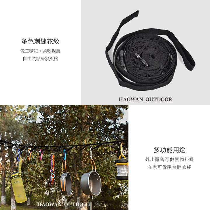 • 多用途功能 - 外出露營可做置物掛繩,在家可做陽台晾衣繩
