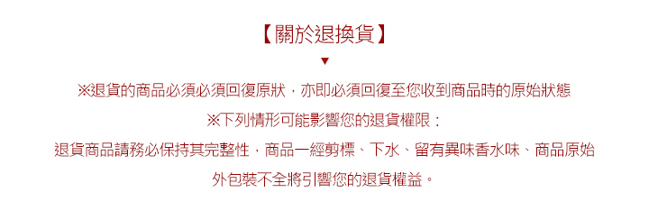 SOGOplus購物的消費者,除依法律規定不適用7天猶豫期之商品外,都可以依照消費者保護法規定,享有商品到貨享七天猶豫期之權益(請留意!猶豫期非試用期),依法辦理退貨商品必須是全新狀態且包裝完整(包含主機、附件、內外包裝、隨機文件、贈品等)。如商品一經拆封或使用致商品價值受損,SOGOplus將向消費者就商品一部或全部價值減損收取適當之費用(回復原狀、整新費、消毒費等) (若無法復原,僅能以福利品出售,費用將以商品價值損失計算)。如銷售時已特別註明無法退換貨之商品,請先確認商品正確、外觀可接受再行使用,以免影響您的權利,祝您購物順心。