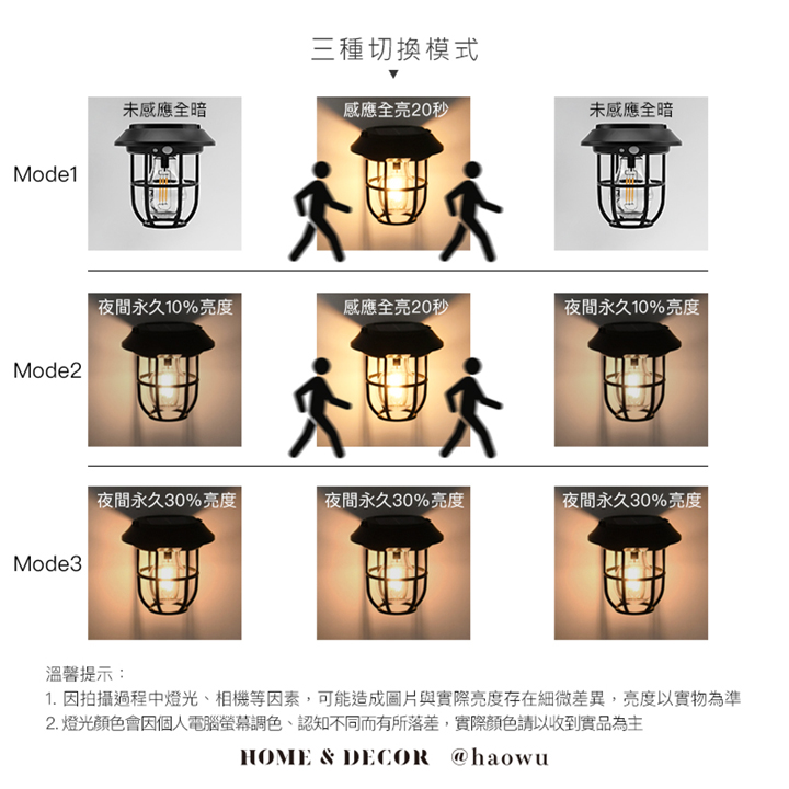• 感應開關-內建三種亮燈控制模式,可依情境自由切換,無論夜間巡視、營地使用或裝飾照明皆可輕鬆應對。