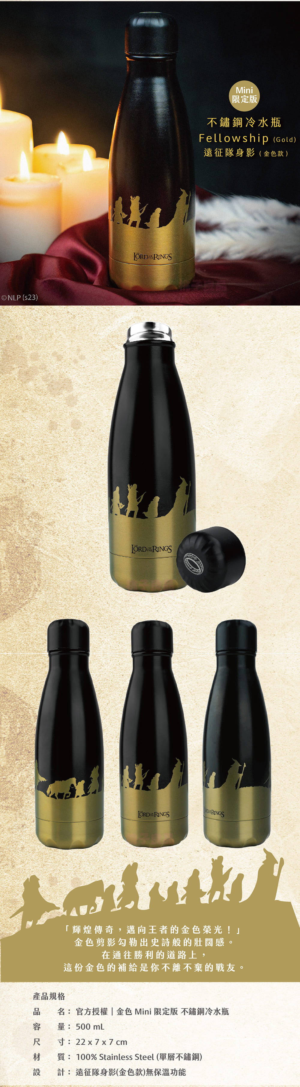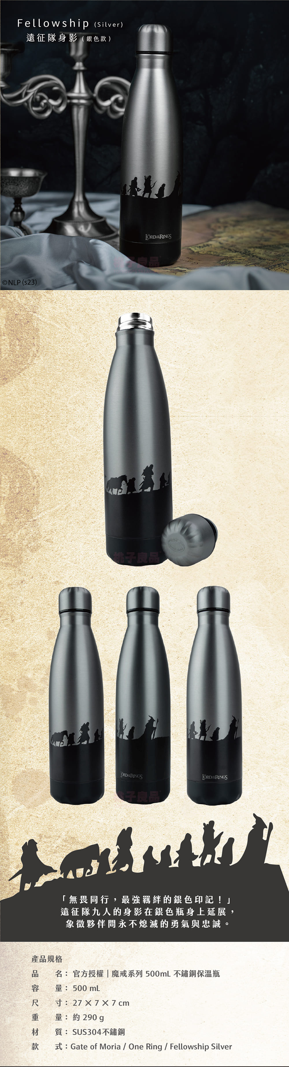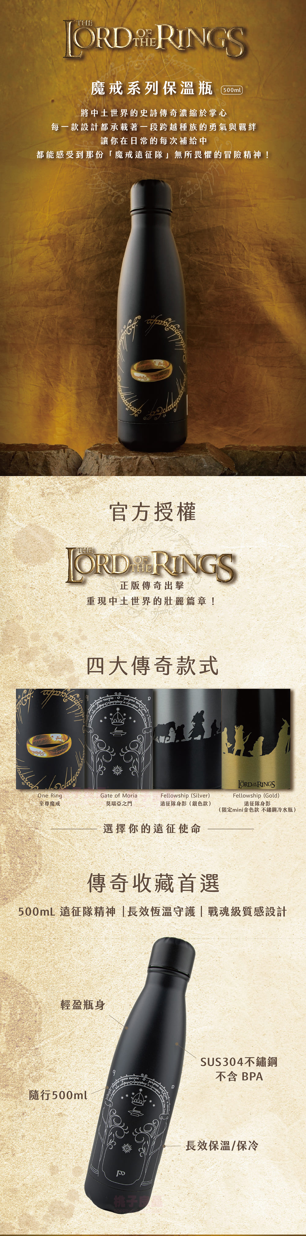 官方授權 魔戒(The Lord of the Rings)系列500mL保溫瓶(代理商公司貨)