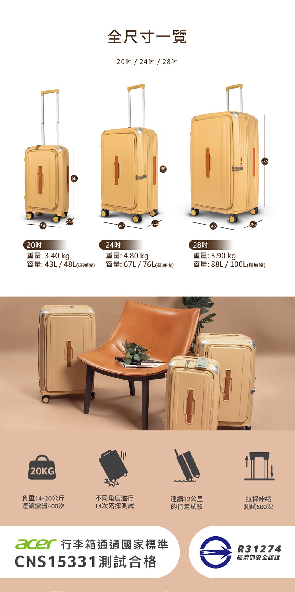 Acer 布里斯本前開式登機箱-20吋黃金海岸
