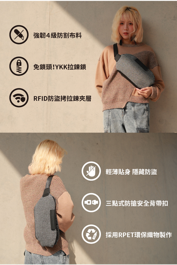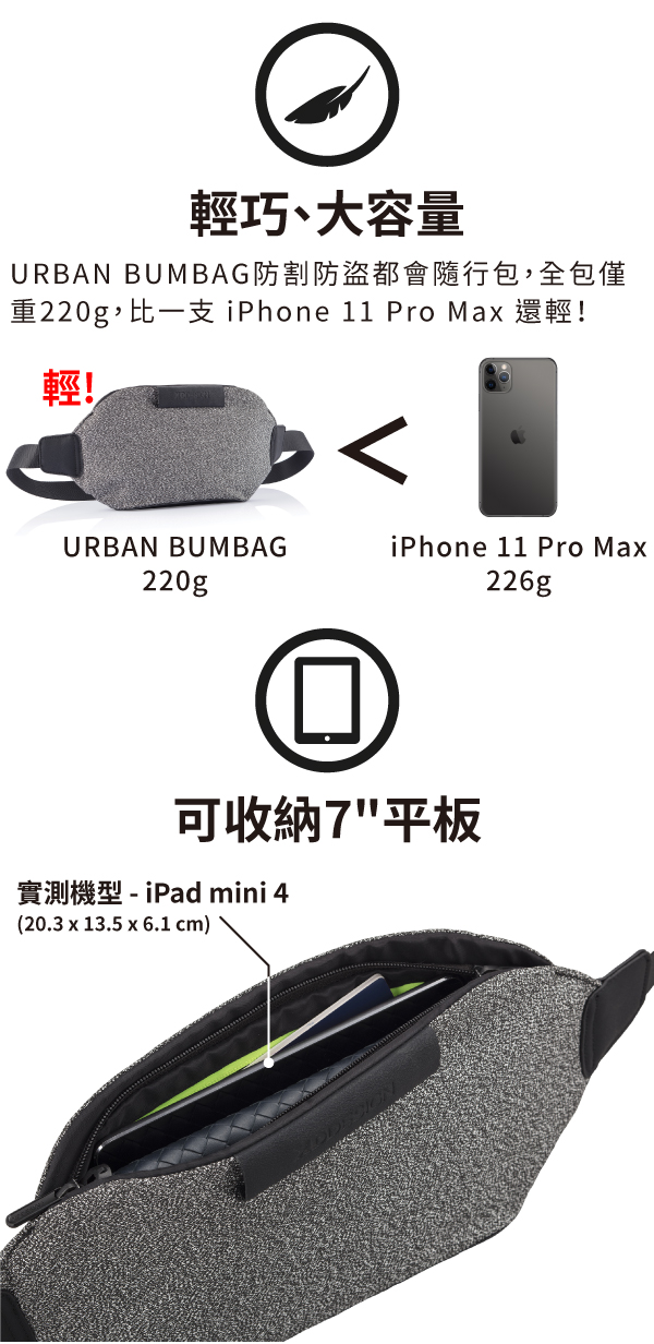 包裝內容物:URBAN BUMBAG 防割防盜都會隨行包*1