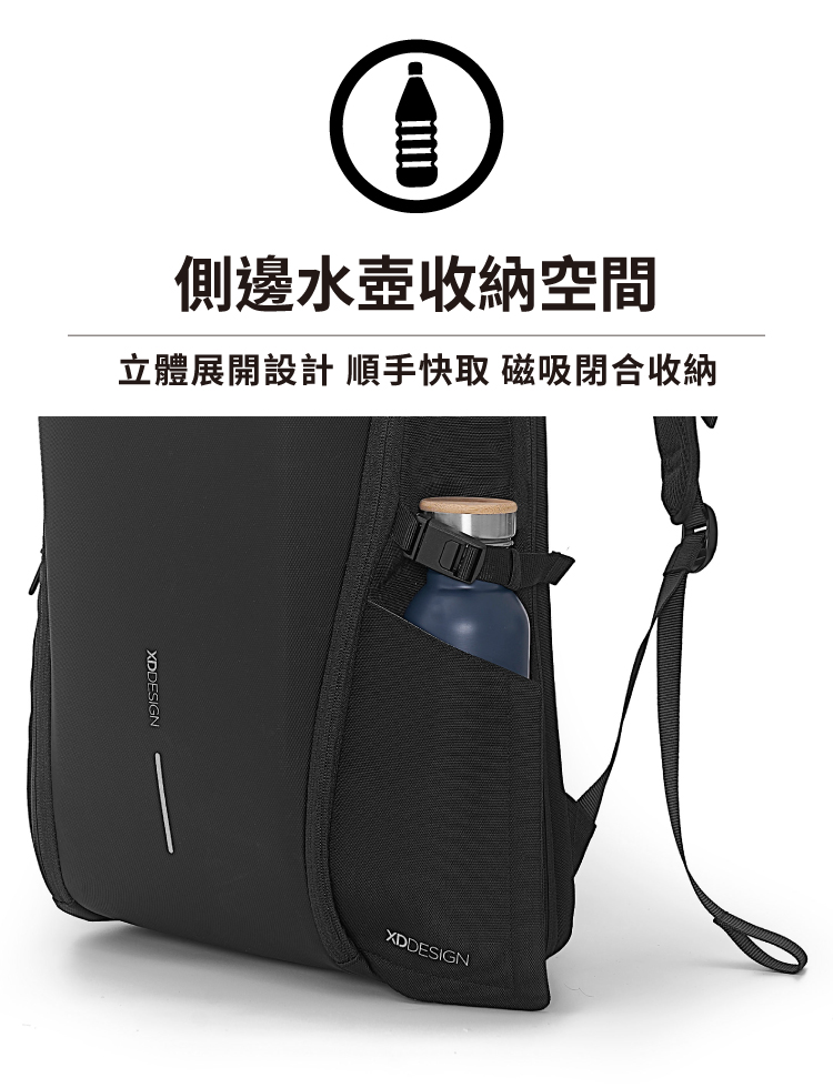 ◆ 磁吸水壺袋設計、可容納15.6"筆電