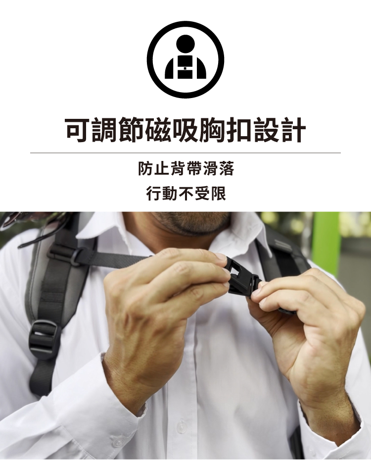 ◆ 舒適透氣背負 可調節磁吸胸扣