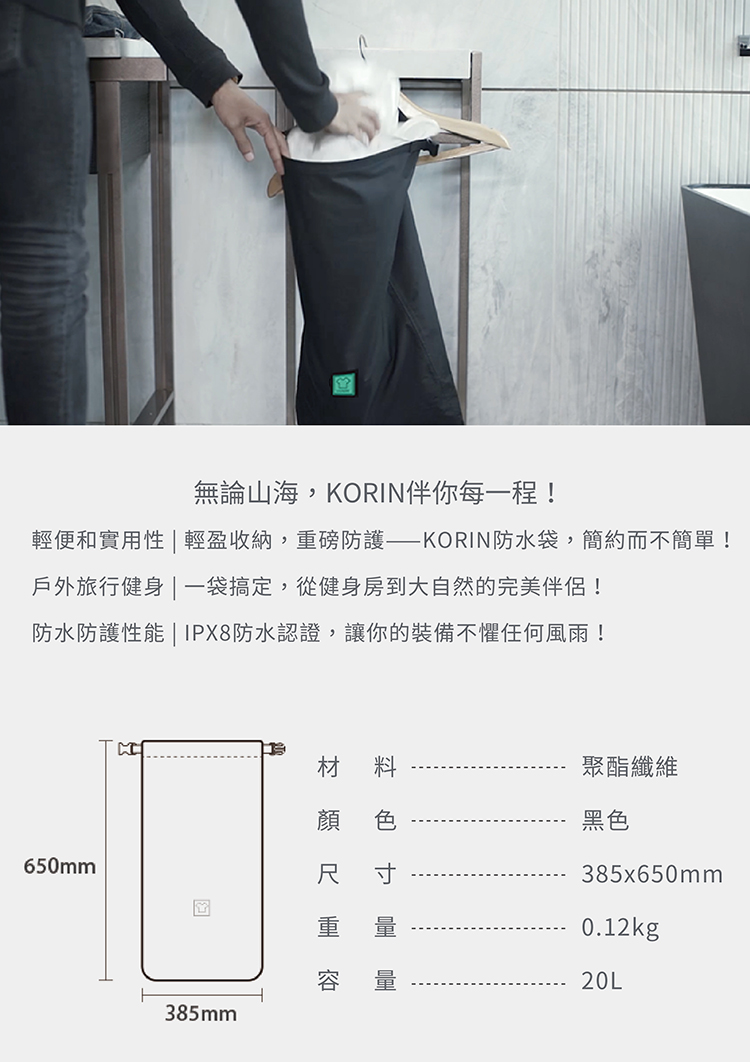 包裝內容物:KORIN IPX8摺疊便攜防水萬用袋*1