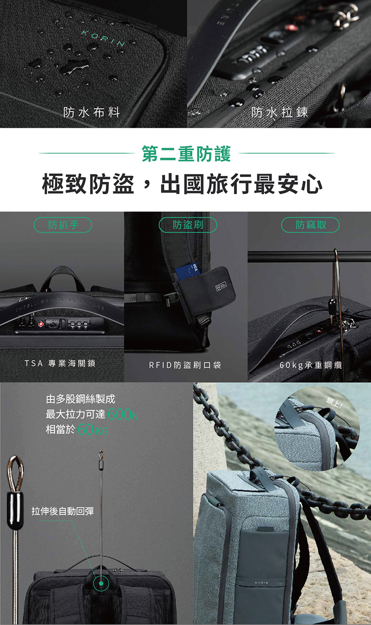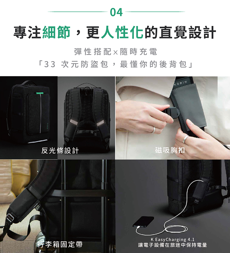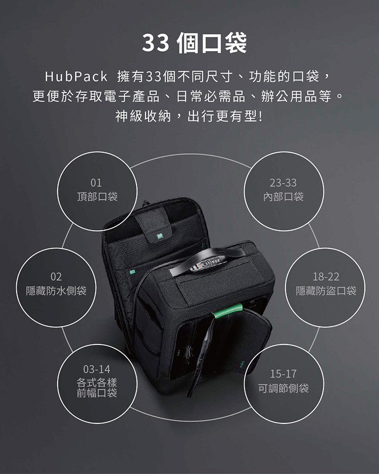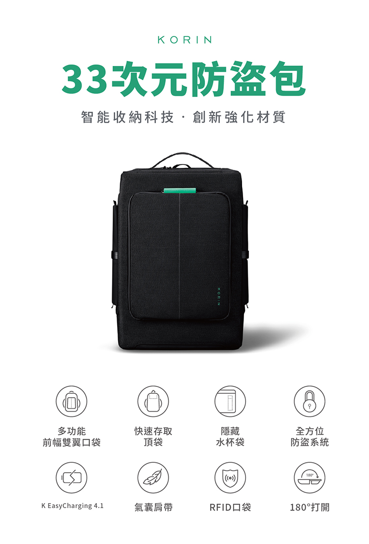 包裝內容物:KORIN HubPack 33 防割防盜後背包*1